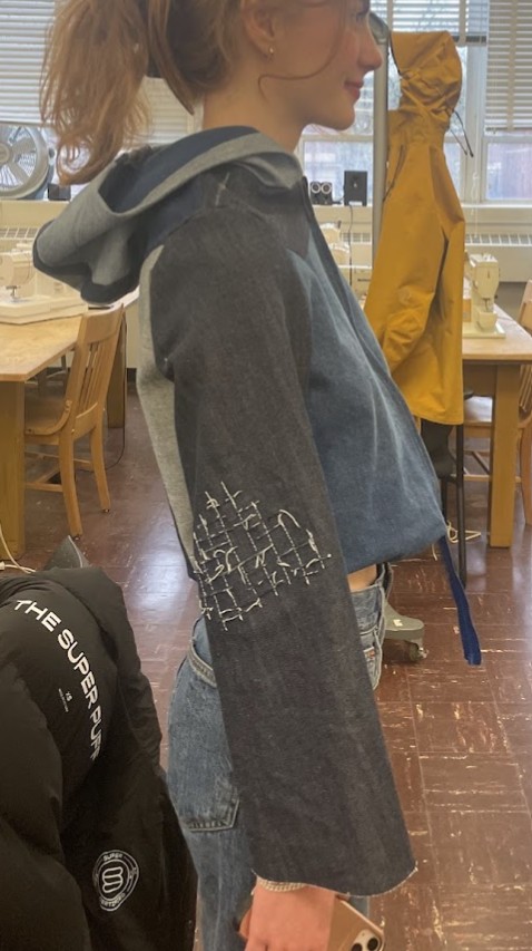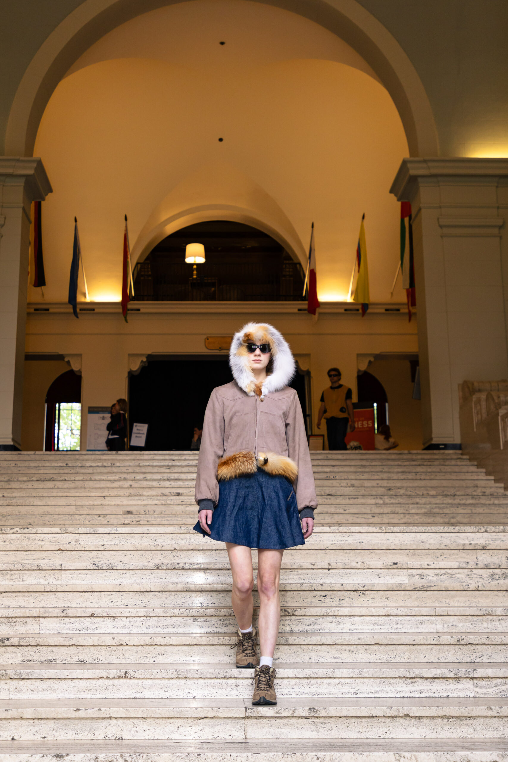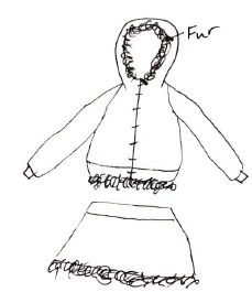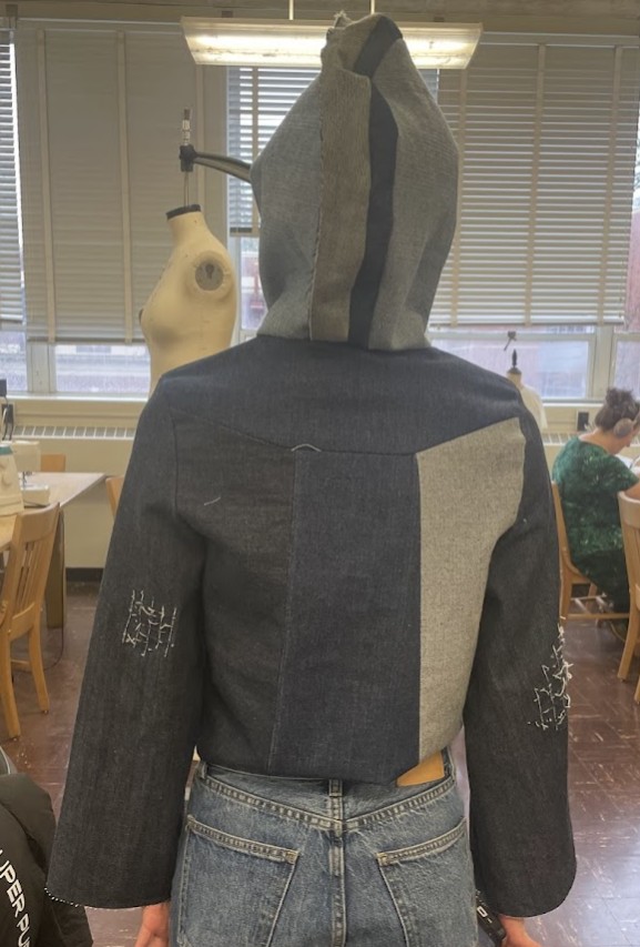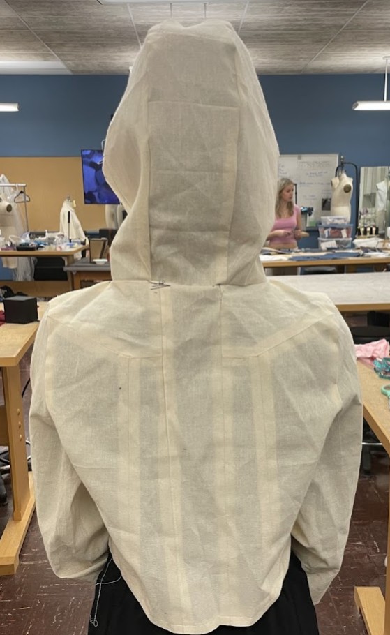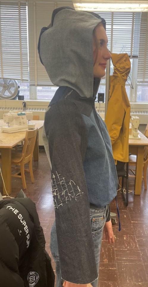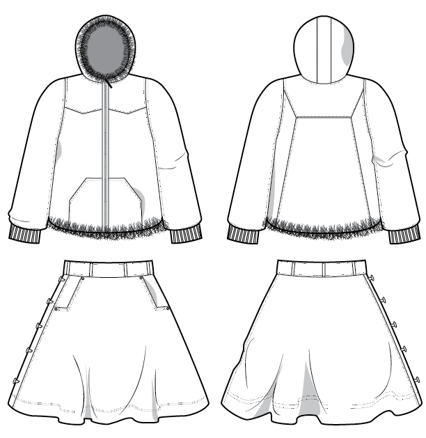 Den — Looking at my favorite jackets, this garment was inspired by the durability of classic Carhartt jackets. The bodice combines a hemp-cotton twill and a thick wool lining for insulation. Around the hood and bottom hem is an added fox pelt trim which adds both protection and softness. Built to handle cold days and hard work, Den is about warmth first.