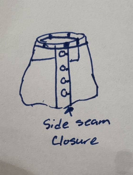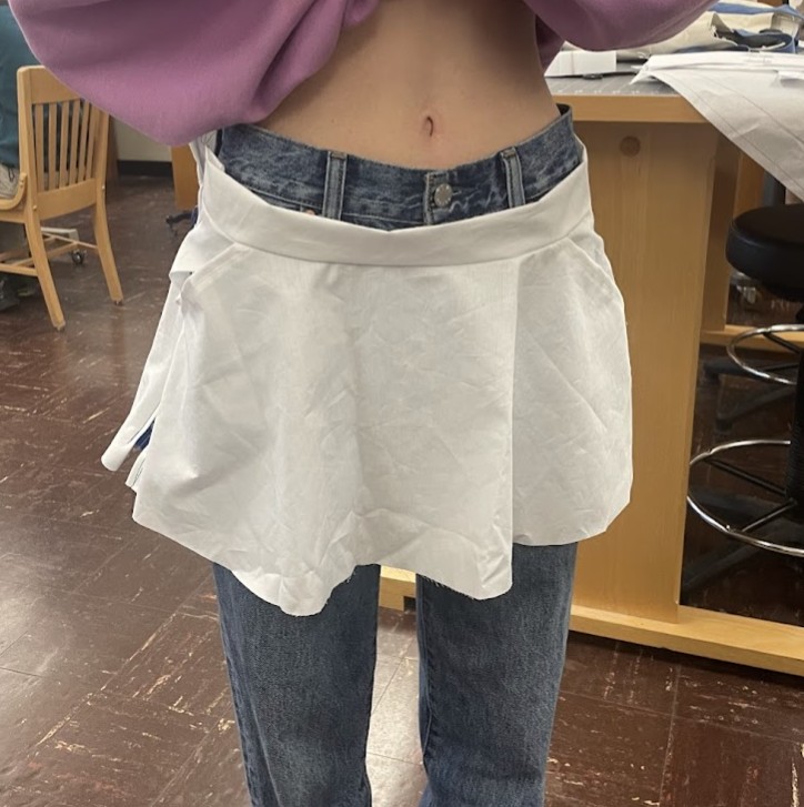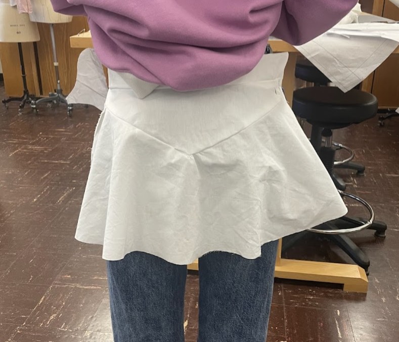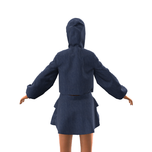Paired with the jacket, the hemp-cotton blend skirt continues the story. It features the collection’s signature front knife pocket holders, antique brass rivets, and five side button closures along the wearers right.